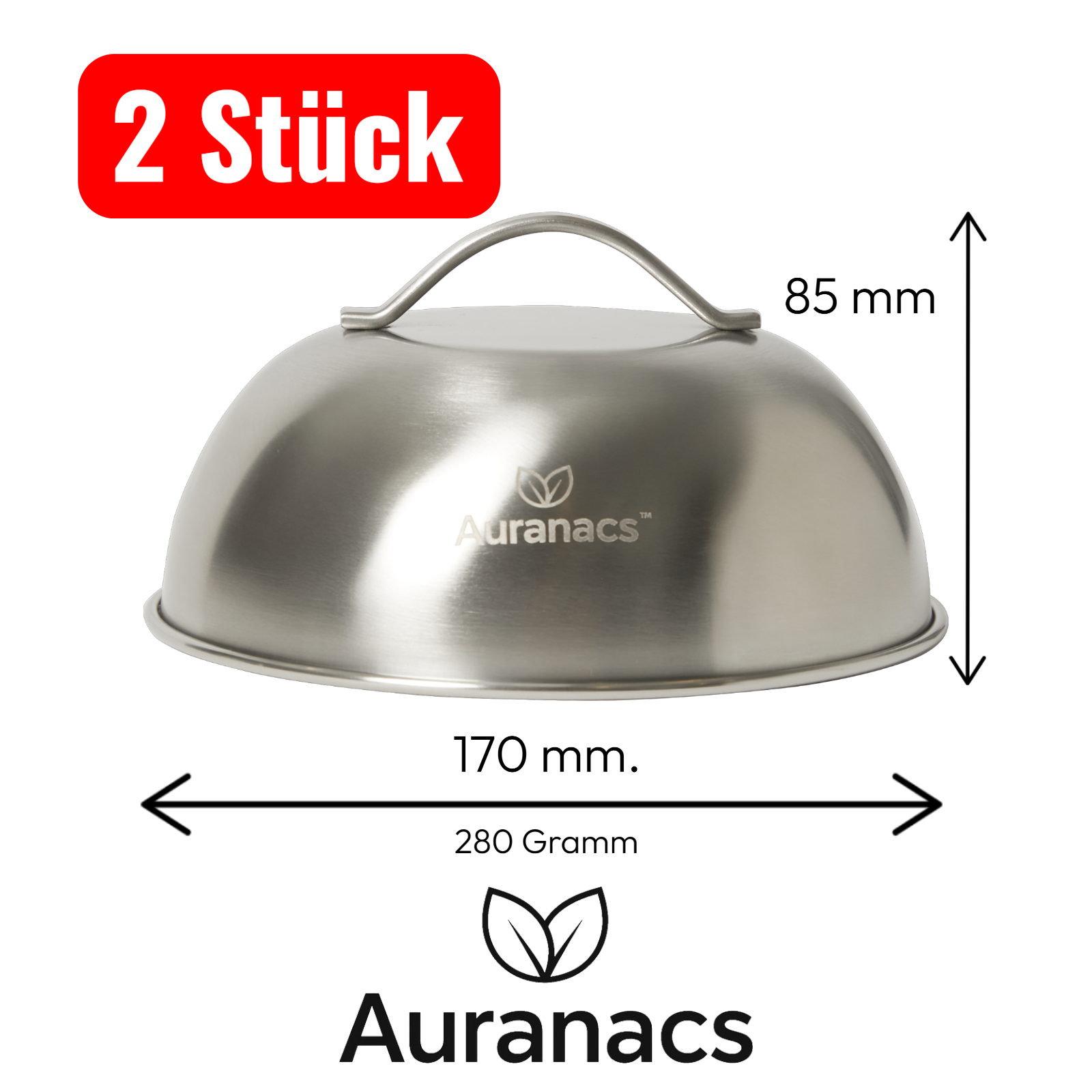 AURANACS® Texas | 2er Set Edelstahl Schmelz- & Garhauben (Ø 170 mm) | für Burger, Grill & Plancha | schnelles Käse-Schmelzen & gleichmäßige Hitze | Dampfhaube mit Griff | robust & spülmaschinenfest