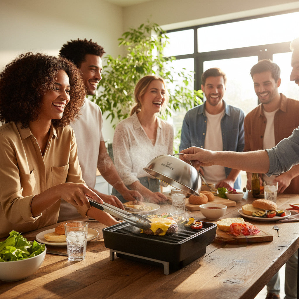 Erinnern Sie sich an diesen einen perfekten Burger-Moment? Wenn der Käse in cremigen Kaskaden über das saftige Fleisch fließt, wenn der erste Biss eine Symphonie aus Textur und Geschmack offenbart, wenn selbst hartgesottene Grill-Profis kurz innehalten und anerkennend nicken... Die AURANACS Texas Schmelz- und Garhauben sind die geheime Zutat für genau diese magischen Momente.